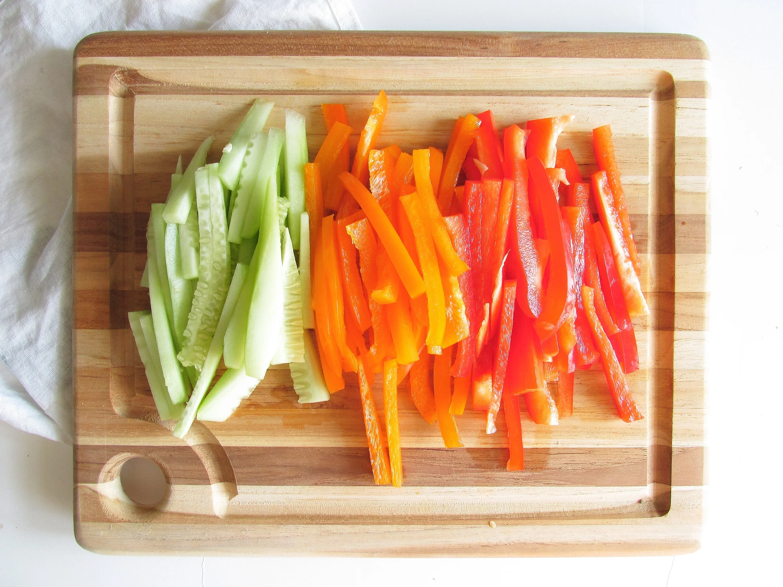 - 1/4 cup orange bell pepper (about 5 medium thin strips)