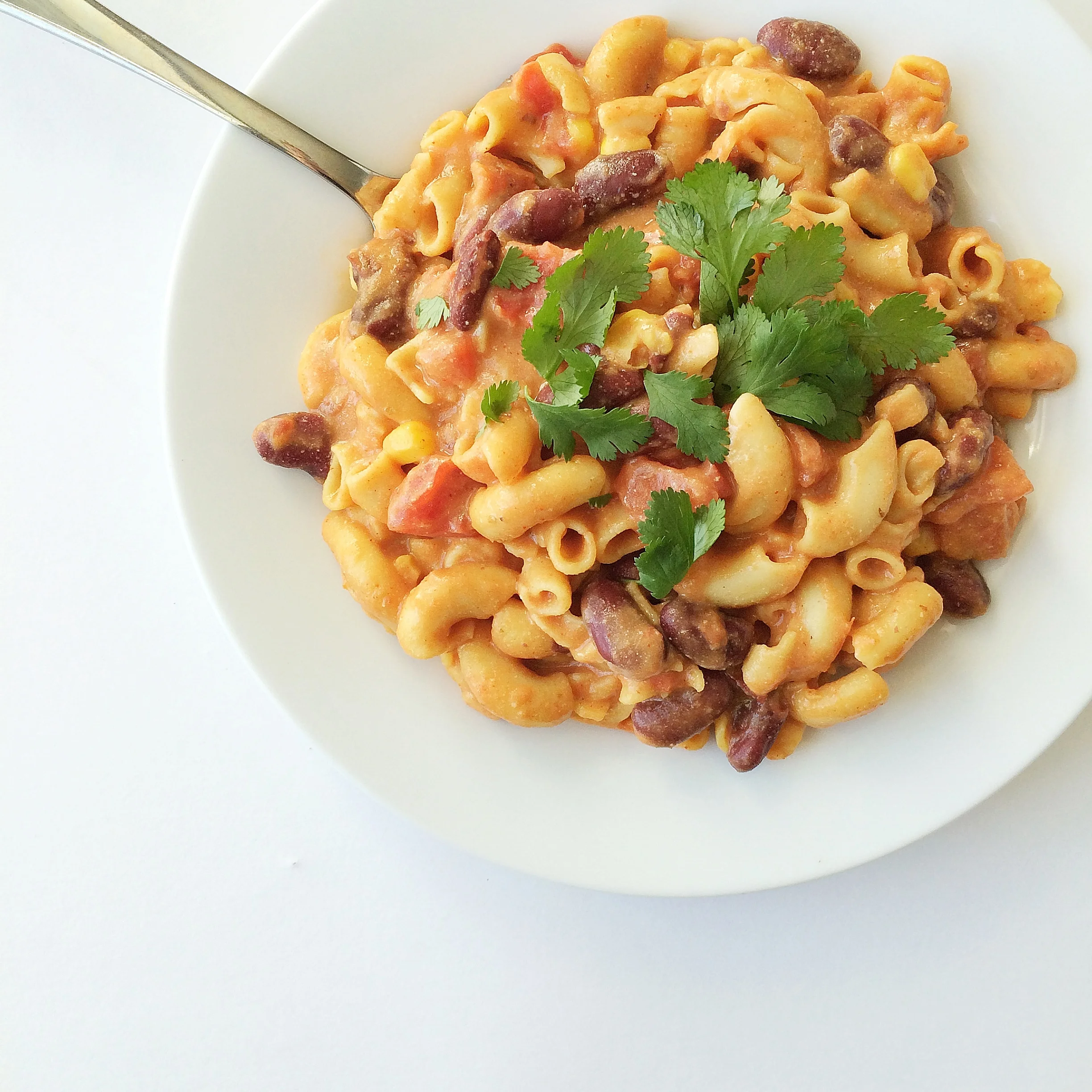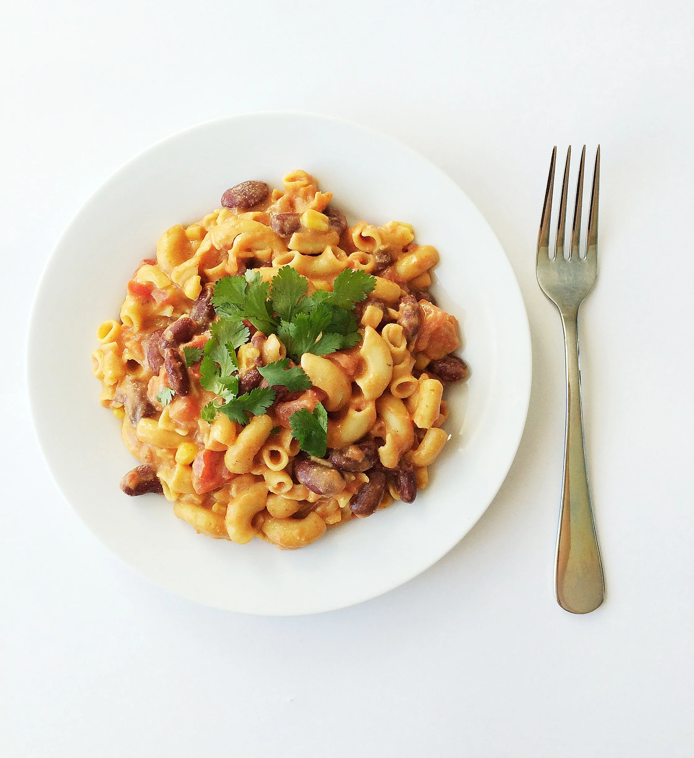 I was also reminded how lucky I am to have good friends. My girlfriends were super supportive and it was comforting to know that I am not the only one who gets overwhelmed from time to time. My friend, Lauryn called me the next day to tell me she made me two big meals that I could eat for lunches and/or dinners that week to help reduce some of my stress (so I did not need to cook). How amazing is she?! She is a plant-based foodie and a wonderful cook so I was so excited to check out what she made. One of the dishes she made was this Southwest "Mac & Cheese" and WOW, it knocked my socks off.