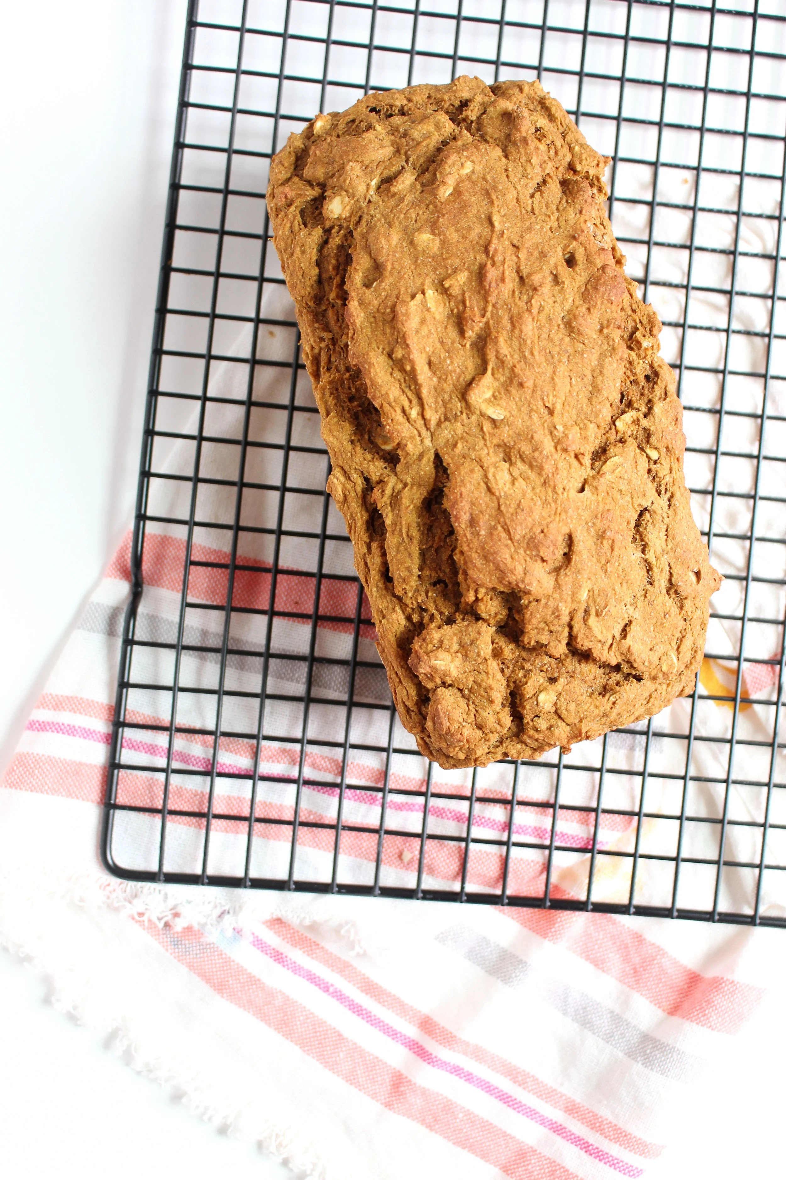The result was a delicious loaf that tastes like pumpkin apple spice and everything nice! It's a hearty loaf (thanks to the whole wheat flour, oats, and flaxseed) that somehow feels still feels really light (THANK YOU apple and pumpkin!!).