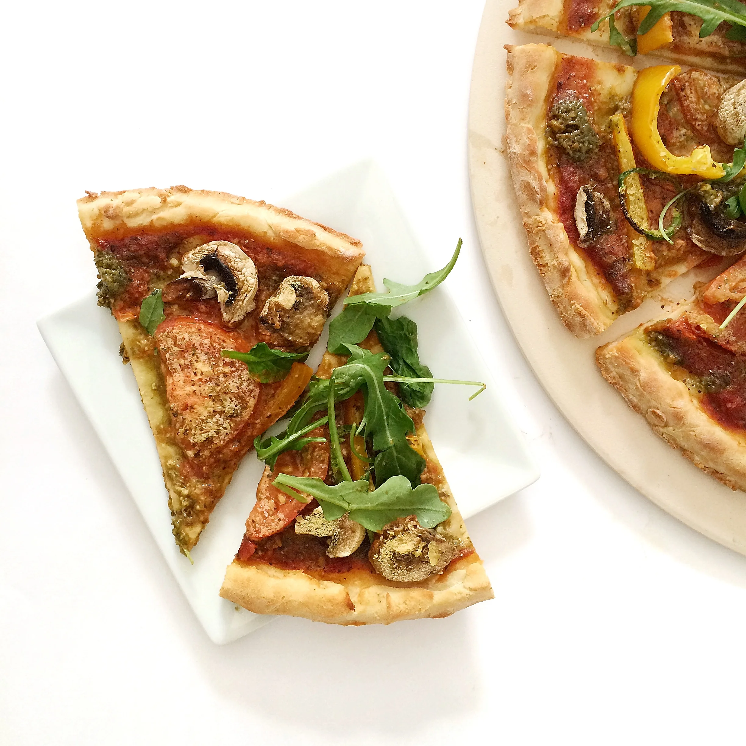 There are 3 things that make a pizza really good. Crust, sauce, and fresh veggie toppings. My favorite pizza places do all of those exceptionally well and I wanted to do it just as well at home.